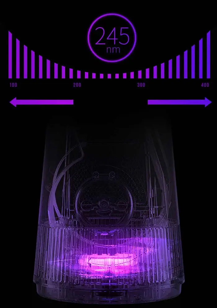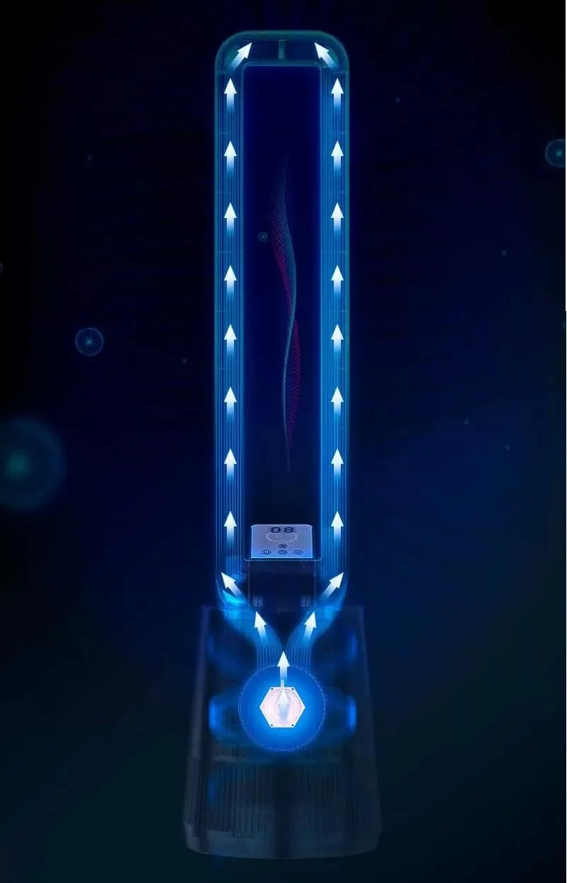 Fan korpusidagi ultrabinafsha chiroq havoni dezinfektsiya qiladi, virus va bakteriyalarni yo'q qiladi