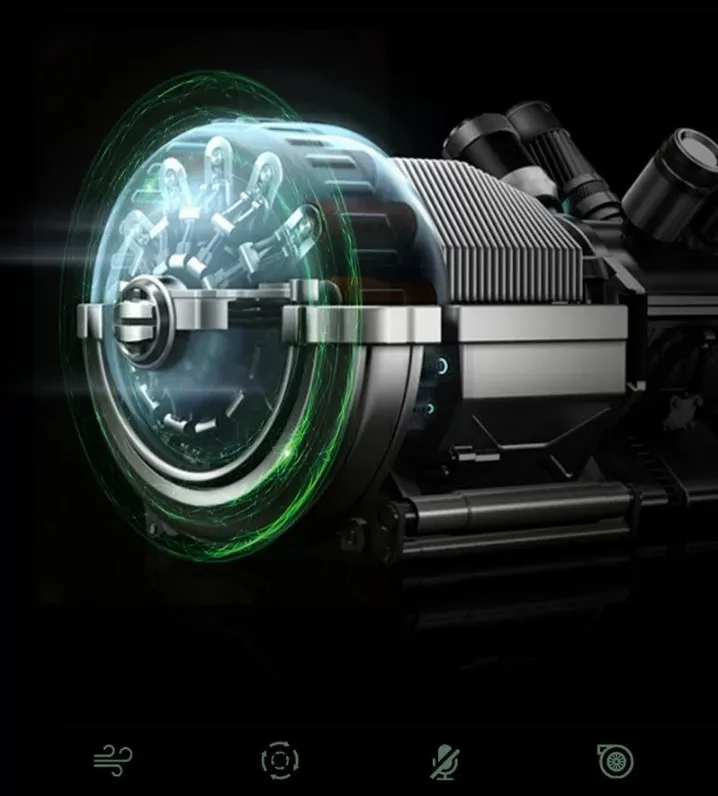 Murakkab havo kanallari tizimi bilan birgalikda cho'tkasiz vosita fanning ishlashi paytida shovqin darajasini kamaytiradi.